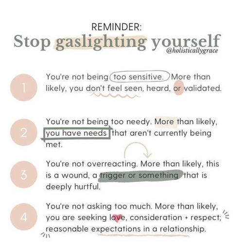 Those moments when the person loved you tried to change you, you reflect and think, had I have just bent my ideals, I could have staved off this unfortunate event. GASLIGHTING!. Questioning what you did wrong without giving credence to the other party. GASLIGHTING! Losing yourself in all of your alleged ineptitude for not seeing the signs. GASLIGHTING! How can I fix what is broken? GASLIGHTING!
