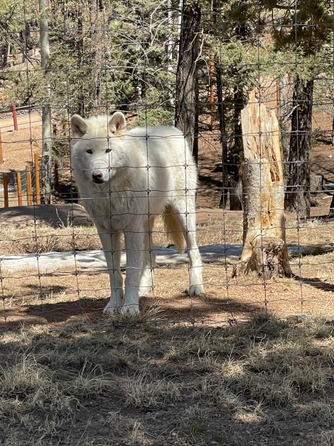 We played hard for a good 15 minutes. I helped release all that pent-up energy in her small taut body. She seemed temporarily exhausted. We exited the dog relief area. I locked up behind us. Carrying her pickle, as she is completely unreliable to keep it, I brought it to the vehicle and threw it on her comfy taco. I locked Ellie up to the trailer, while I took a few minutes gathering some pictures of the area. I saw an arctic wolf keenly aware of Ellie’s presence. This wolf was alert. I captured a ton of pictures of this guy.