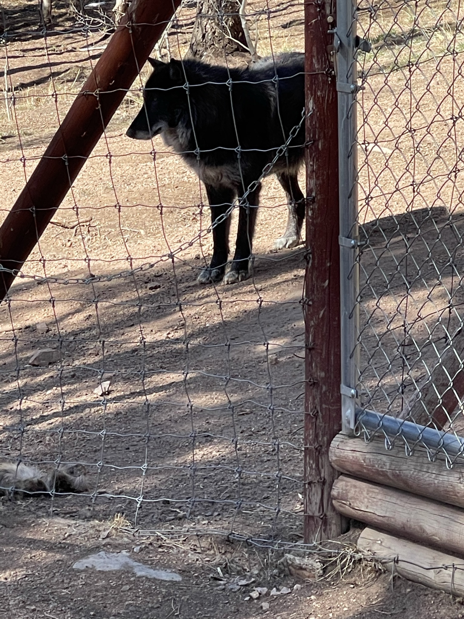 Ellie and I had walked down the long dirt driveway. Getting a sense of how large and how remote the wolf habitat was. We had garnered the attention of a couple of the wolves, in the pens closest to the parking area. I was unable to determine if Ellie looked like a snack or a play pal, so I did my best to hide her on the far side of the trailer from their sight. Though it should be noted, wolves have amazing senses of smell too, so what the fuck was putting her over there going to do?