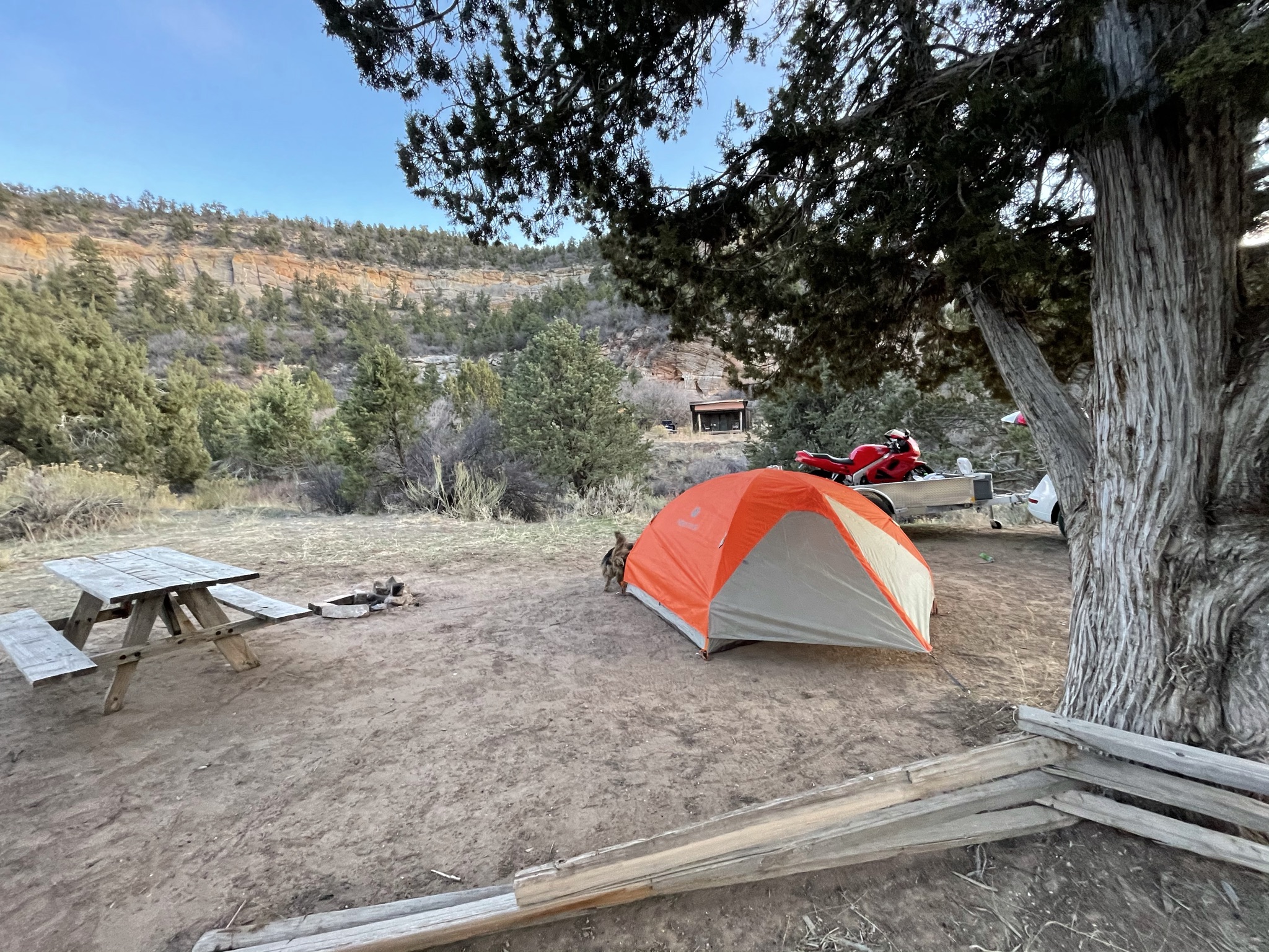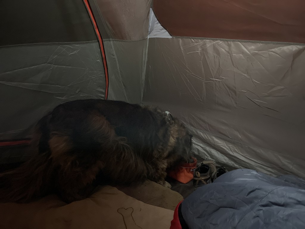 I showered, which felt soooo good. I took my time staying in the building, to benefit from the Wi-Fi. I sent off some more pics, checked in on some friends through a multitude of chat apps. Once I was done dilly-dallying, I got back into the vehicle, and made the 300-foot trek to the campsite. Ellie had done a fantastic job protecting the car from inside the comfort of her taco.